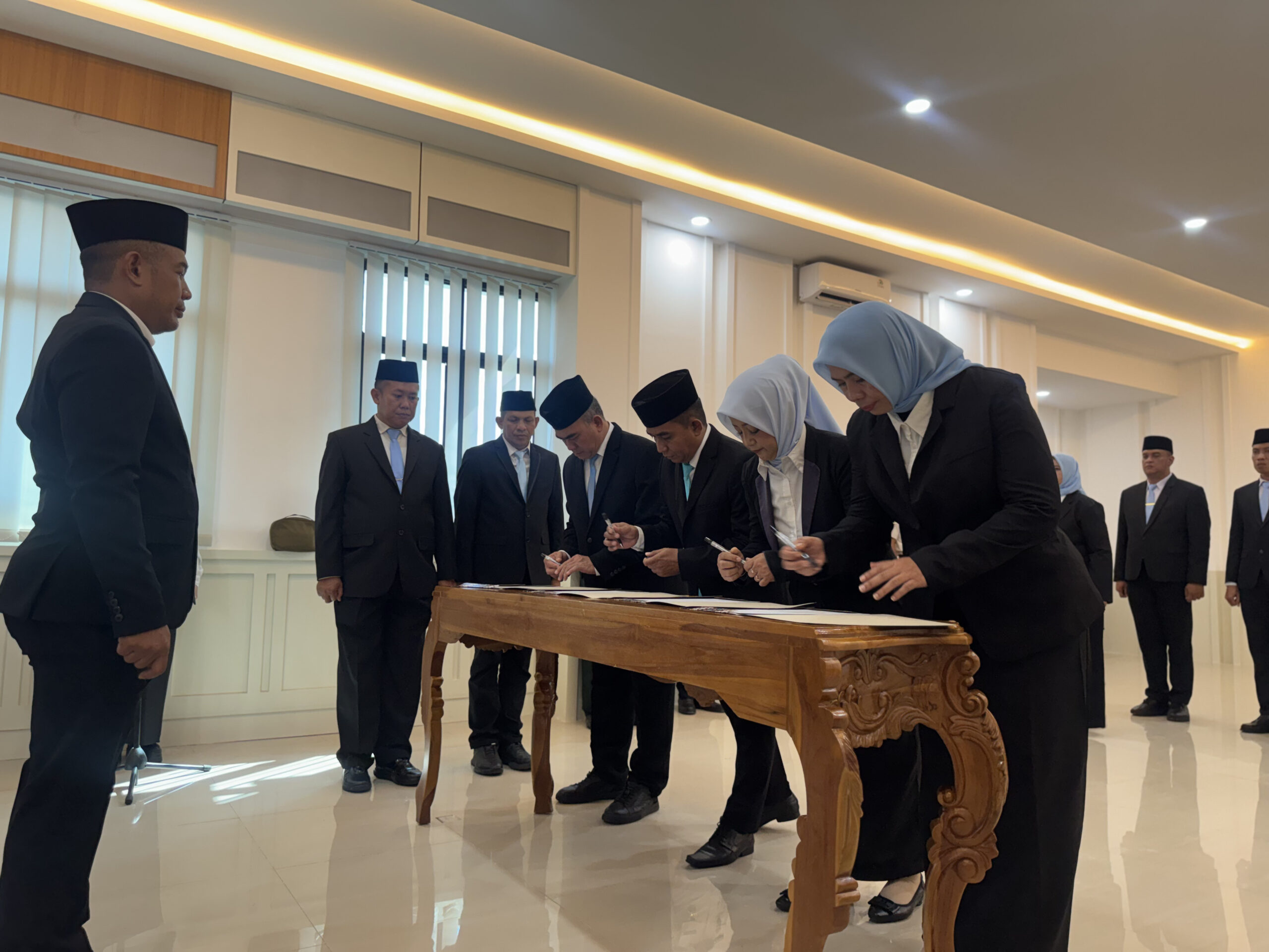 Dalam prosesi pengambilan sumpah jabatan, setiap pejabat yang dilantik mengikrarkan komitmen untuk menjalankan tugas dengan penuh tanggung jawab sesuai dengan ketentuan peraturan perundang-undangan yang berlaku. Momentum ini menjadi bagian penting dalam upaya penyegaran organisasi sekaligus penguatan kinerja kelembagaan.